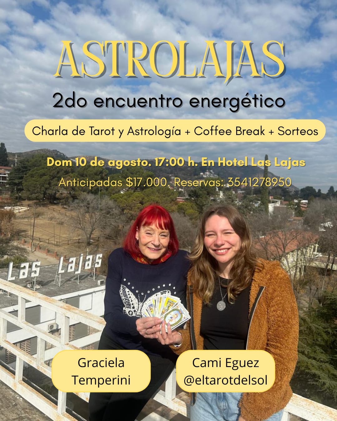 Este domingo 10 de agosto desde las 17 horas, el tradicional Hotel Las Lajas de Villa Carlos Paz será escenario de un nuevo encuentro que promete emoción, conocimiento y magia: llega la segunda edición de AstroLajas, una propuesta que combina astrología, tarot, mitología, juegos y una merienda para compartir.