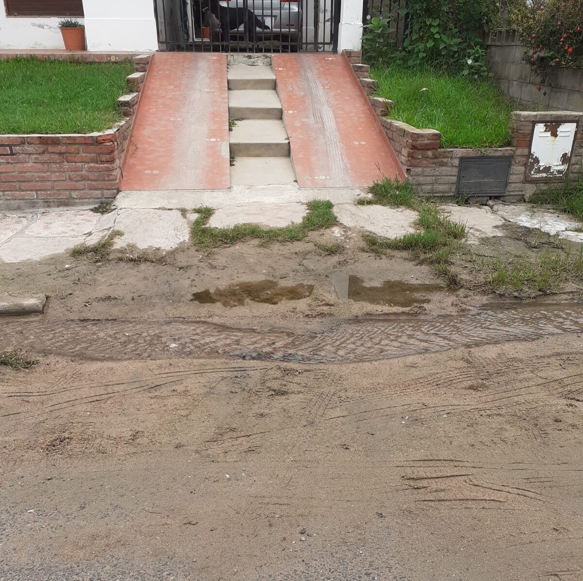 Ana Lía Beatriz Caruso vive en Barrio La Quinta de Villa Carlos Paz, en la calle Niandubay al 200, y en los últimos días el acceso y salida de su vivienda se le dificulta debido a la gran acumulación de arena y agua, tras las últimas precipitaciones registradas en la ciudad.