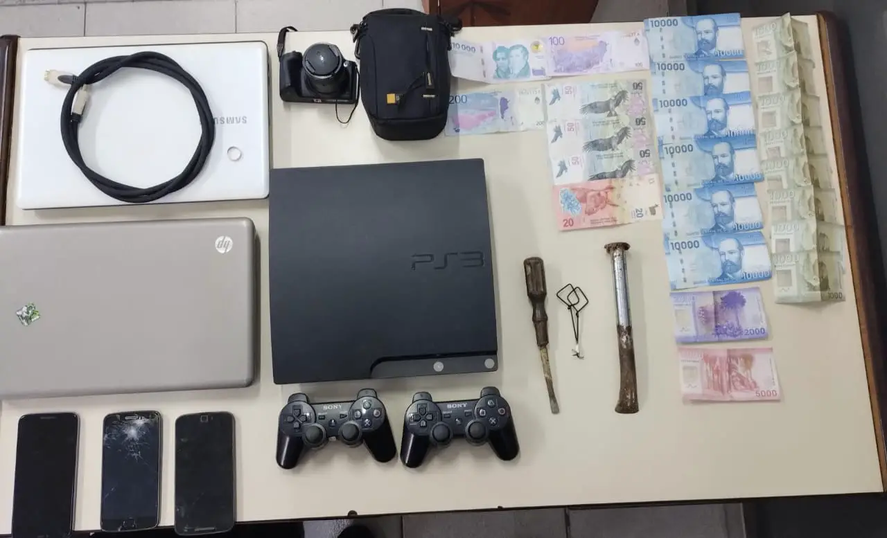 El operativo resultó en el secuestro de varios objetos robados, entre los cuales se encontraban una mochila, una PlayStation 3, dos notebooks, tres teléfonos, una cámara fotográfica, anillos de oro, y sumas de dinero en pesos chilenos y argentinos. Todos estos elementos fueron recuperados y el detenido fue trasladado a la Alcaldía local, donde quedó a disposición del Magistrado Interviniente para continuar con las diligencias judiciales correspondientes.