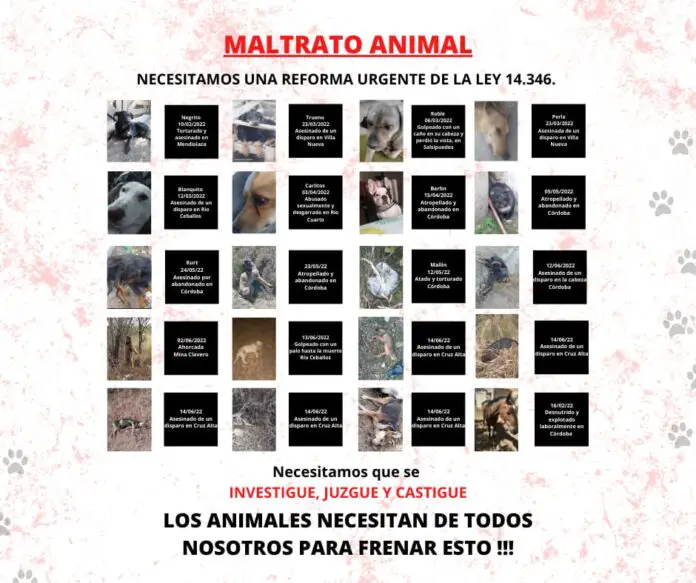 Y agregó: “Es sabido que los casos registrados, son únicamente los que han llegado a conocimiento de numerosos ciudadanos que se dedican a velar por los derechos de los animales, pero que en realidad son solo “la punta del iceberg” o una parte de los cientos de casos de maltrato animal que ocurren mes tras mes en nuestra provincia”.