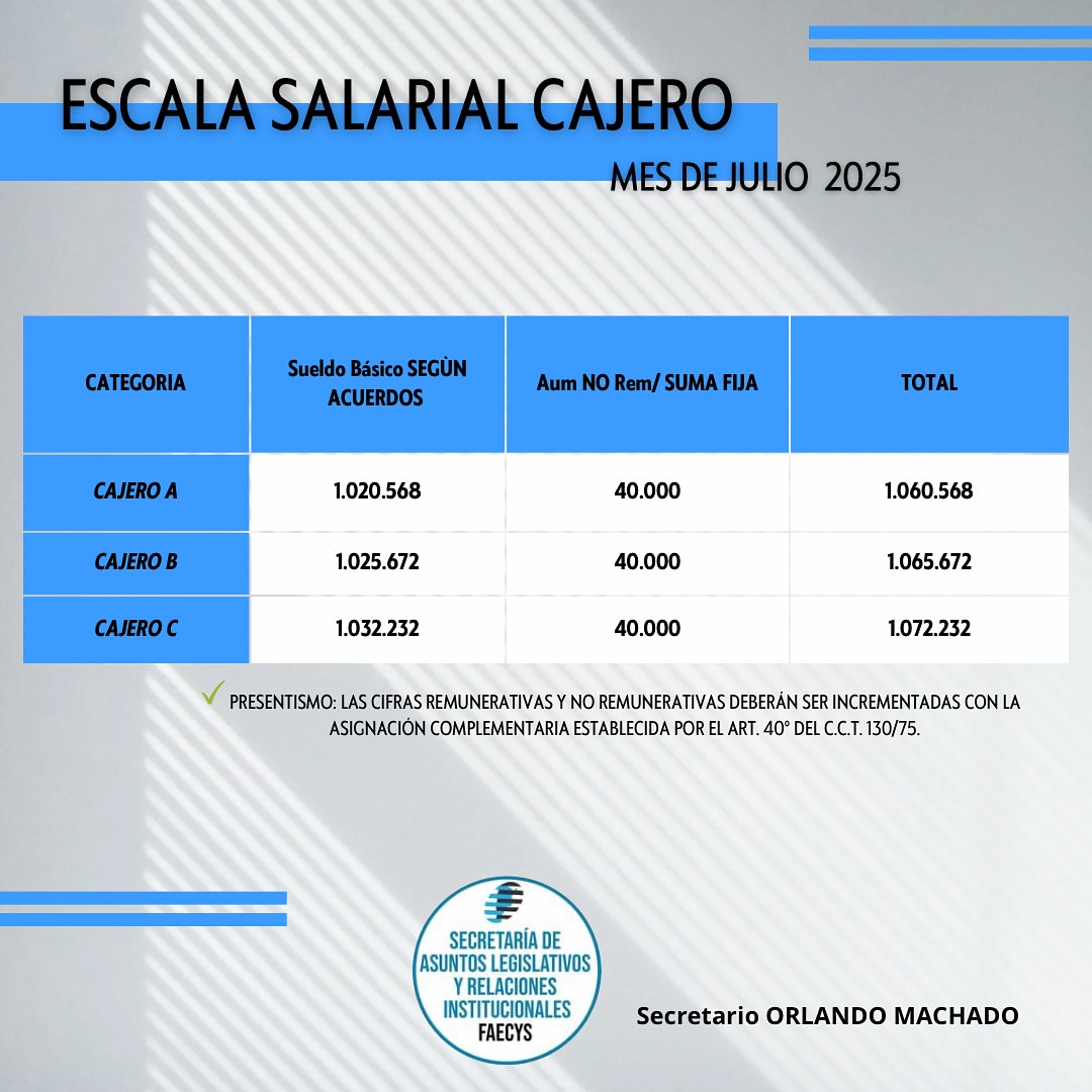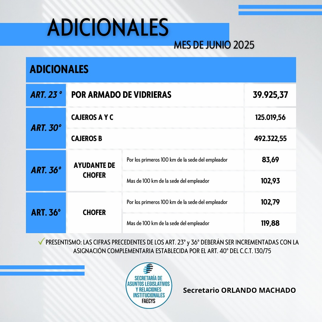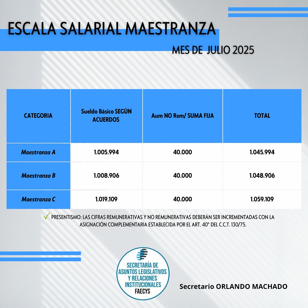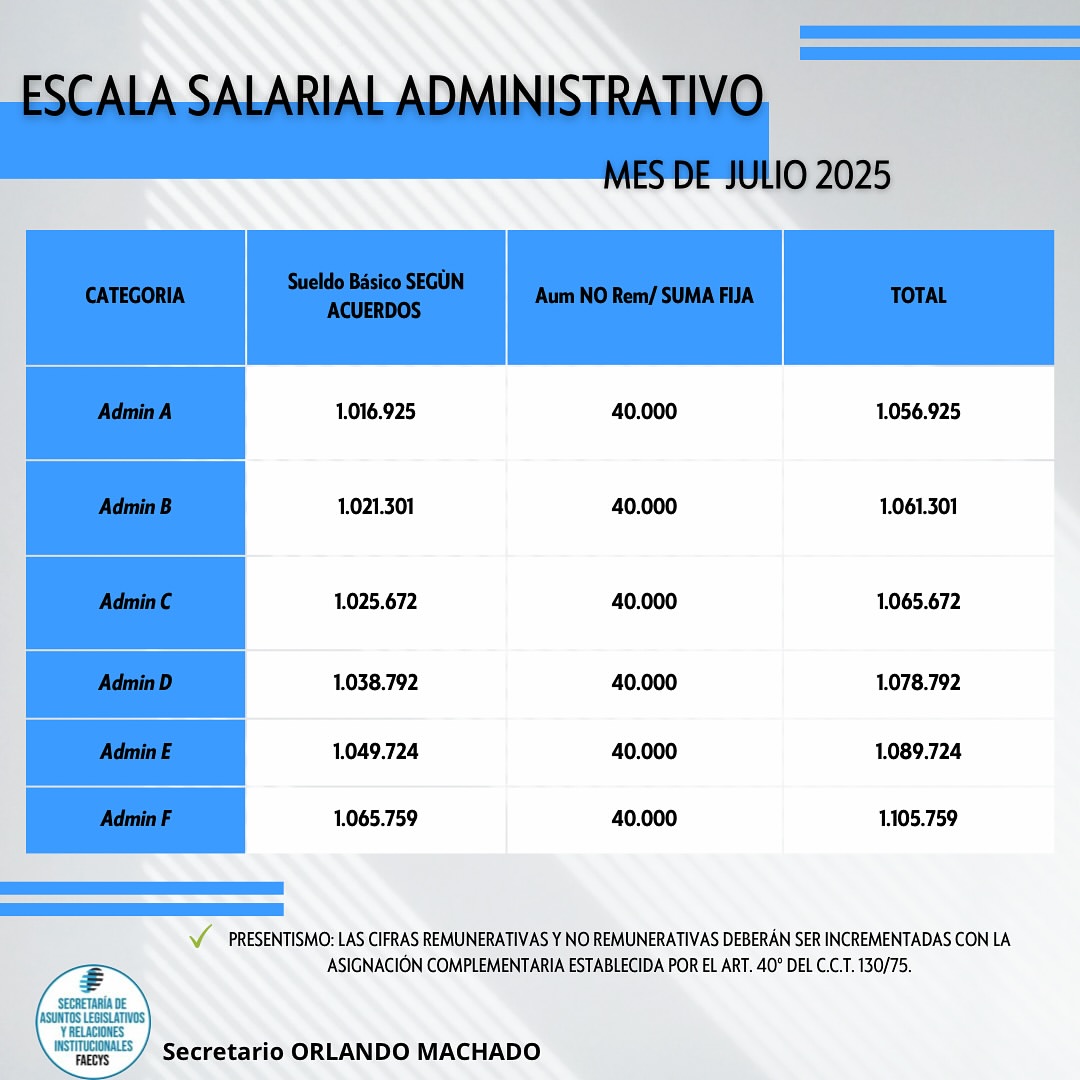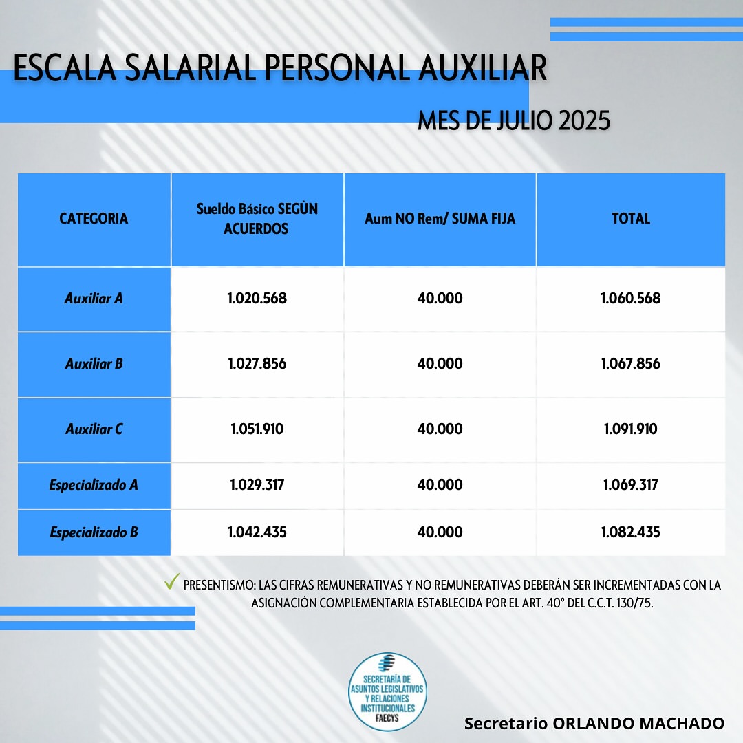 Además del incremento escalonado, se otorgará una suma fija no remunerativa de $40.000 por mes desde julio hasta diciembre de 2025. Este monto se abonará mensualmente y no se acumulará, con la excepción del último pago (diciembre), que será incorporado al salario básico en enero de 2026.