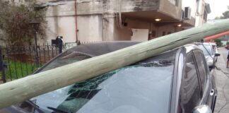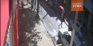 Susto en el centro de Carlos Paz por un poste...