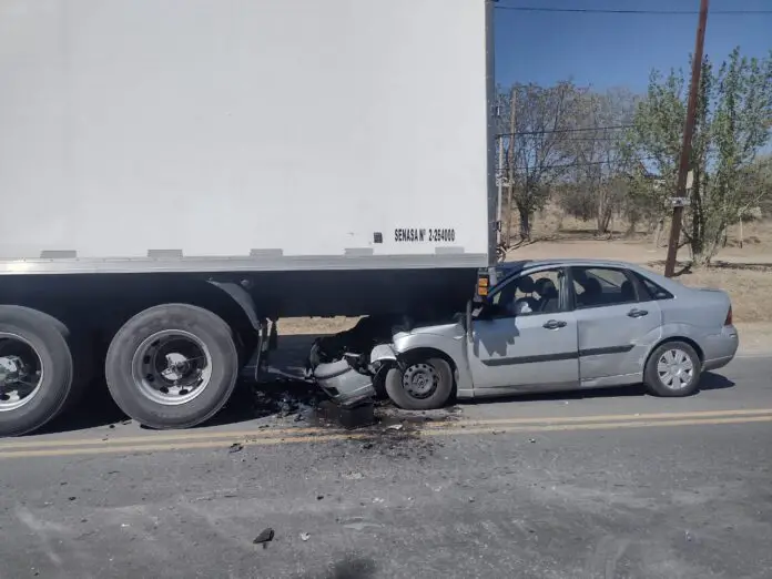 Por motivos que intentan esclarecerse, un Ford Focus gris conducido por una mujer de 28 años, acompañada por sus hijos de 1 y 8 años, se incrustó en la parte trasera del camión Iveco perteneciente a la empresa La Paisanita, el cual era tripulado por un hombre de 38 años.