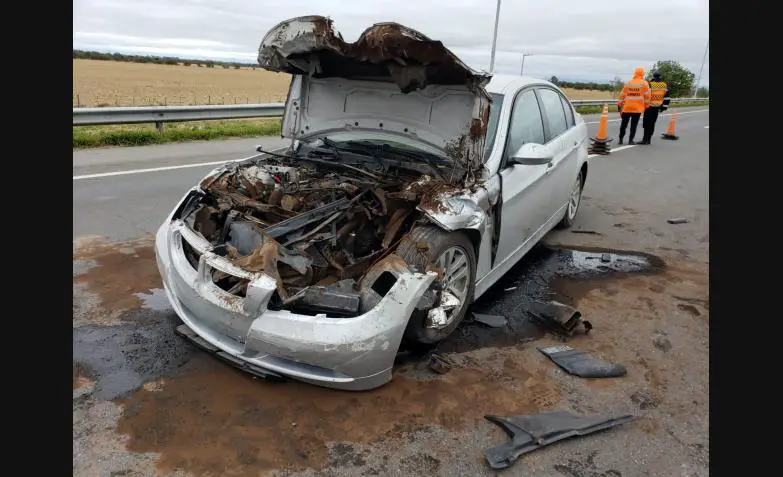 Un segundo accidente ocurrió en la mano contraria, es decir, en dirección Pilar-Córdoba. Un BMW chocó contra un camión, que al parecer no escuchó el golpe por lo que no se detuvo y siguió circulando.