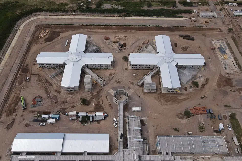 Esta obra, que ya registra un avance del 70 por ciento, incluye una superficie total de 26.800 m² cubiertos y está diseñado para alojar a 896 internos condenados, en condiciones de seguridad y funcionalidad.