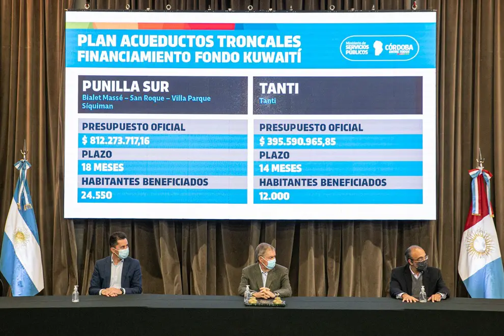Se trata de la segunda instancia de los procesos licitatorios de las obras de agua que beneficiarán a las localidades de Bialet Massé, San Roque y Villa Parque Síquiman (acueducto Punilla Sur) y Tanti (acueducto homónimo).