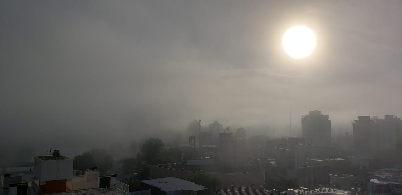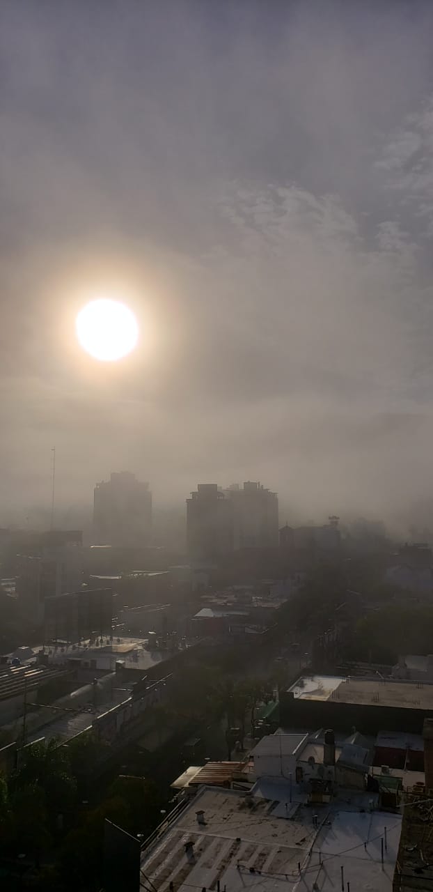 Desde lo alto de algunos edificios, podía observarse como el sol intentaba de a poco hacerse lugar entre la niebla, mostrando así un paisaje poco frecuente para esta zona.