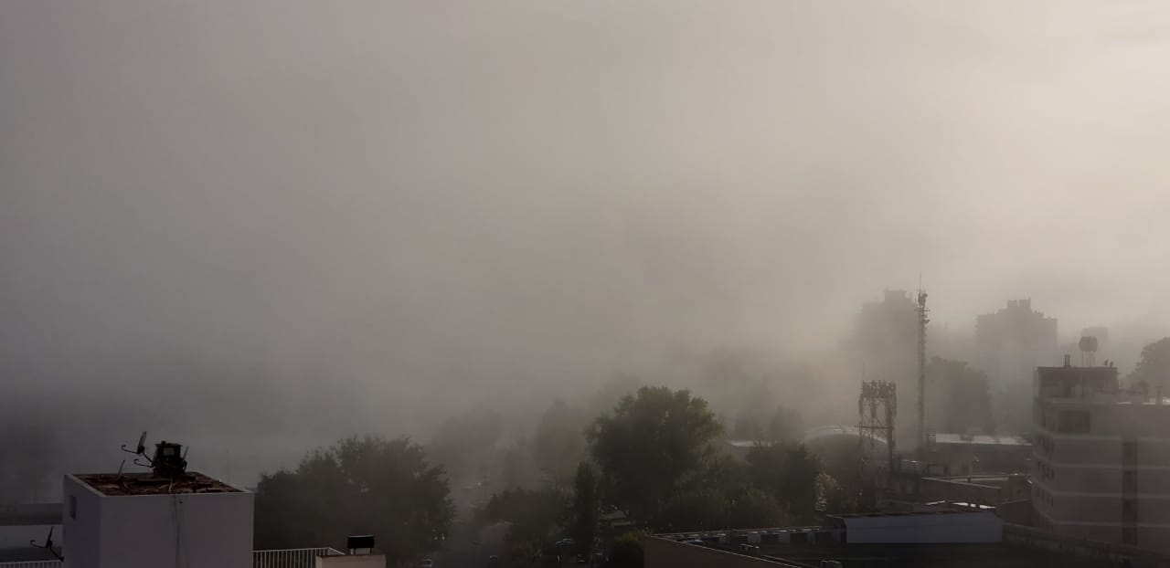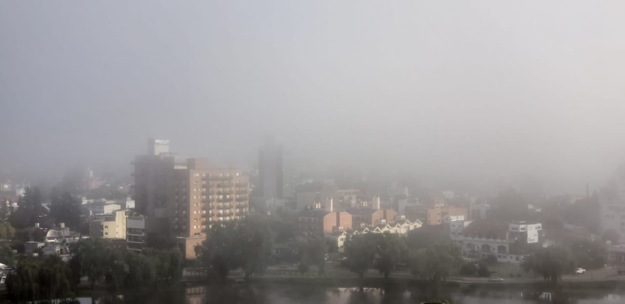 La mañana del martes amaneció con un espeso manto de neblina en toda la ciudad, principalmente en las zonas más cercanas al lago San Roque.