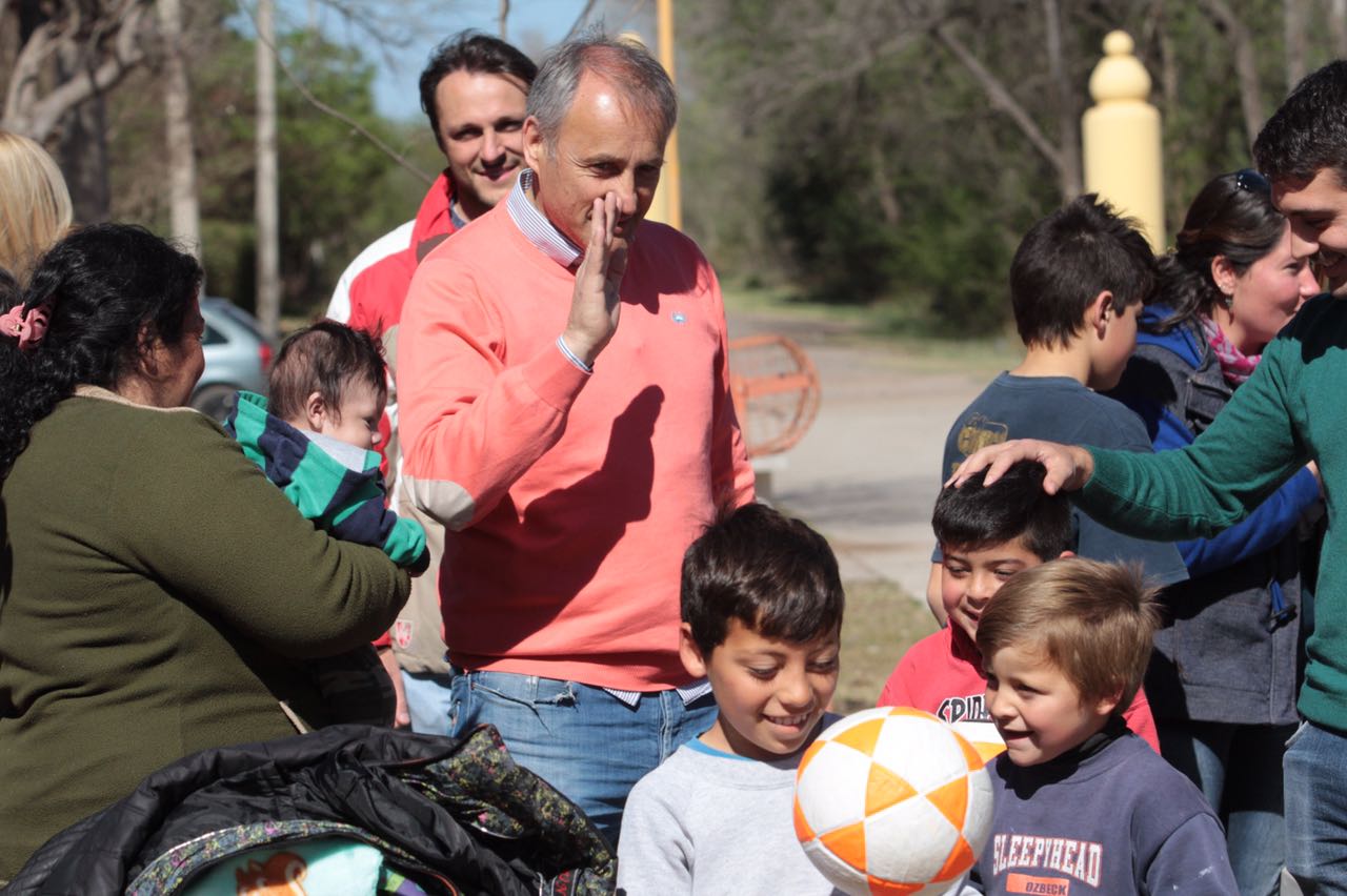 El exárbitro de fútbol participó del Timbreo Nacional que organizó Cambiemos en el país y recorrió la localidad cordobesa de Colonia Tirolesa. Allí visitó a los vecinos y compartió unos mates en la plaza del pueblo.