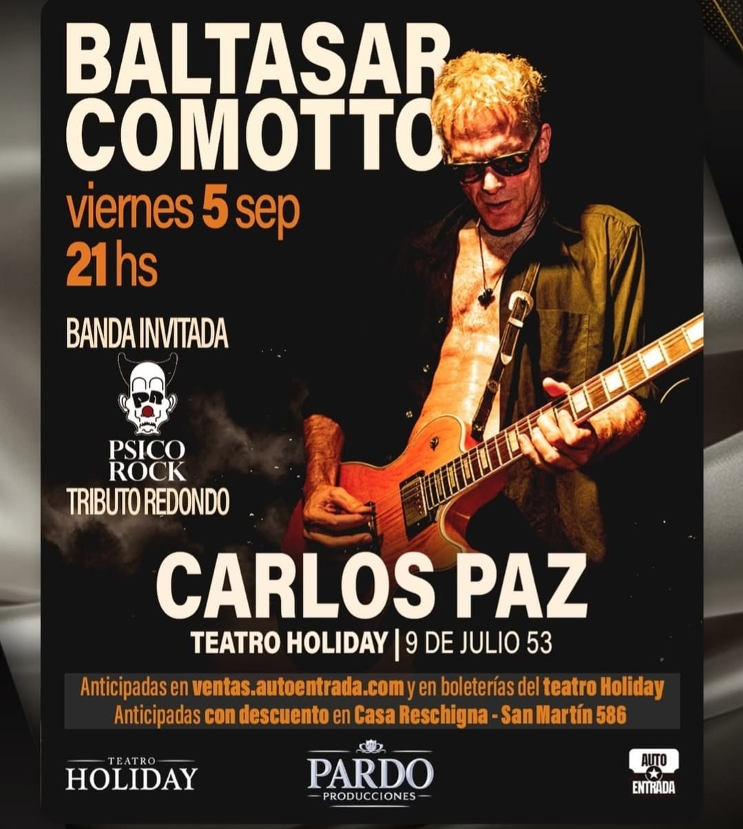 El reconocido guitarrista Baltasar Comotto llegará a Villa Carlos Paz para ofrecer un espectáculo cargado de rock y energía el próximo viernes 5 de septiembre a las 21 horas, en el escenario del Teatro Holiday.