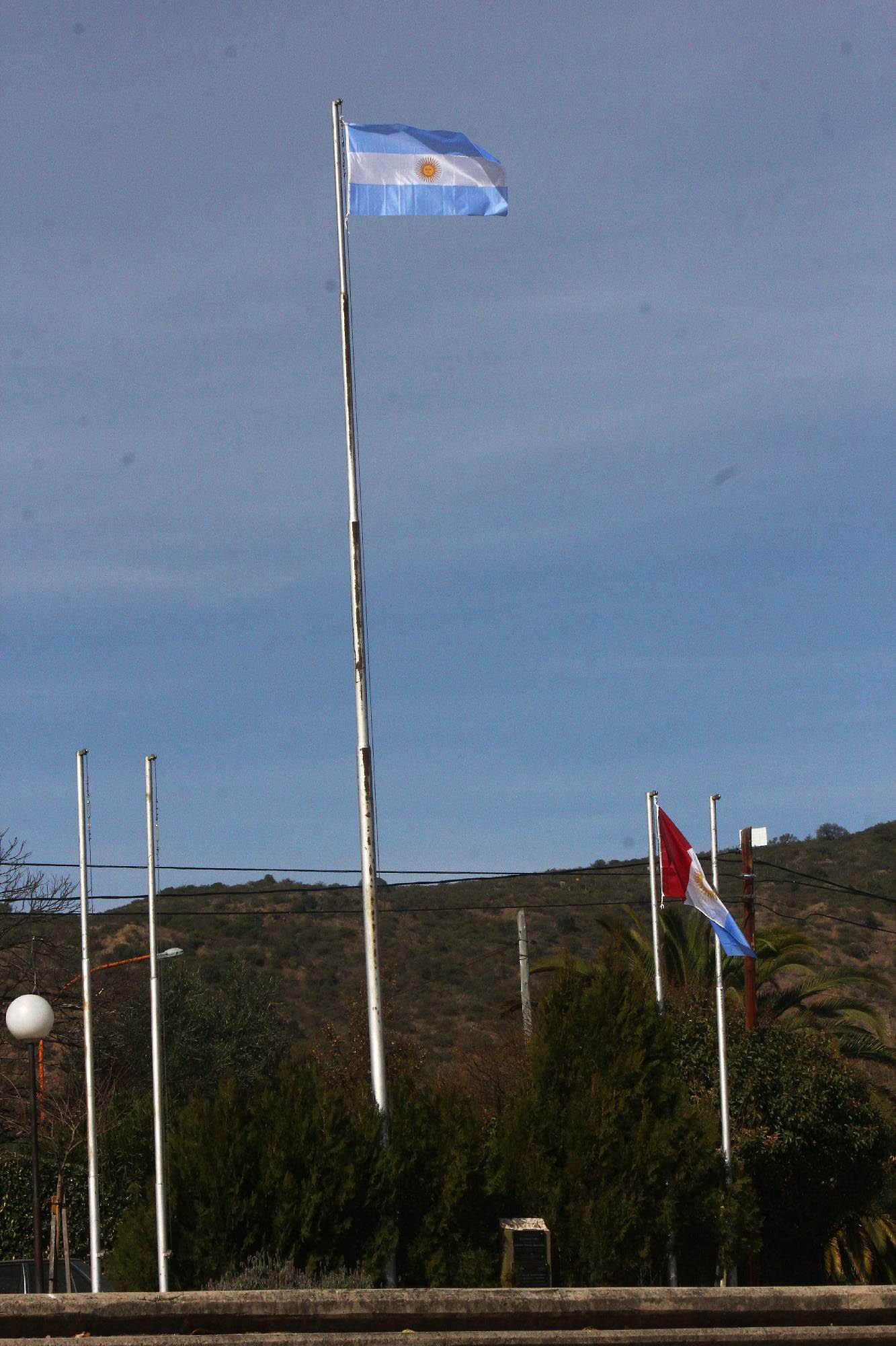 Un gran mástil para ua bandera no tan grande pero no menos vistosa en la Plaza Belgrano