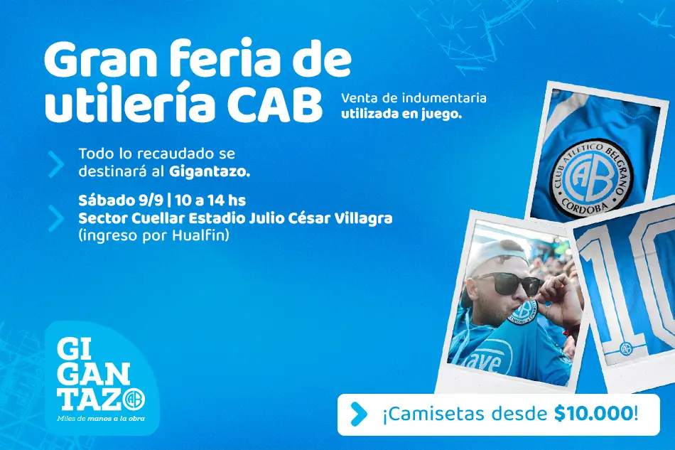 El Club Atlético Belgrano, a través de su departamento de Cultura, organiza para este sábado 9 de septiembre una gran feria de utilería oficial del club. Lo recaudado será para la construcción del microestadio polideportivo y el Museo Belgrano.