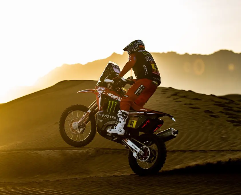 El salteño del equipo oficial Honda finalizó segundo en la etapa de hoy entre Yanbu y Jeddah y se coronó campeón sobre las dos ruedas a sus 32 años de edad y en la quinta participación en un Dakar. Una caída con fractura del tabique nasal hizo peligrar el sueño de Benavides pero pudo reponerse y quedarse con la gloria.