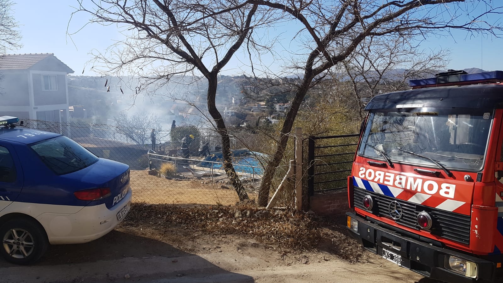En horas de la siesta de este viernes, los bomberos comenzaron a combatir un incendio que se inició en un patio ubicado sobre calle Sócrates de Villa del Lago y luego se extendió hacia patios de viviendas ubicadas hacia otras dos calles.