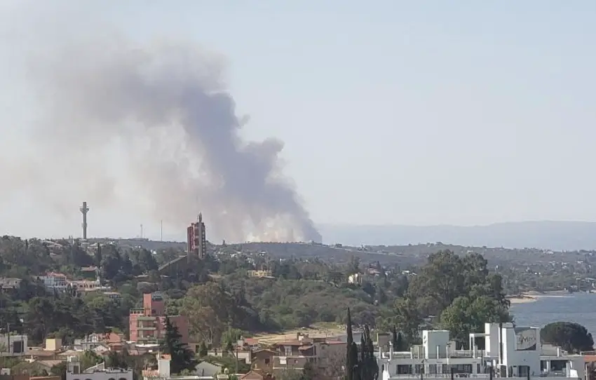Esta vez, el fuego se concentra en inmediaciones de la localidad de Villa Parque Síquiman, en un sector comprendido entre el lago San Roque y la ruta 38.