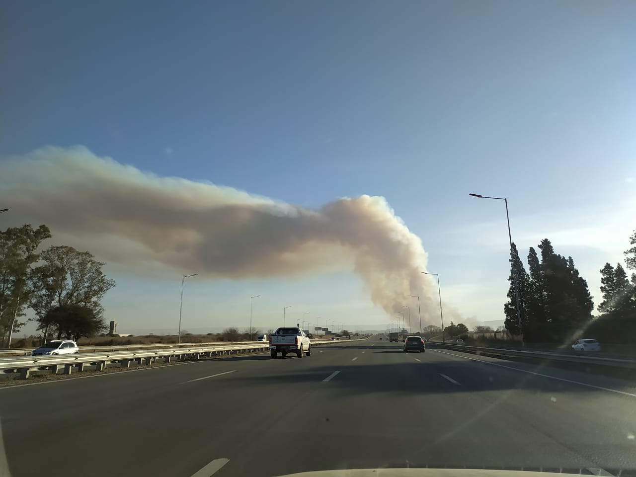 Varios cuarteles de Bomberos trabajan esta tarde en el combate de un incendio forestal que se desató pasado el medio día en una zona de campos a la vera de la autopista Justiniano Allende Posse.