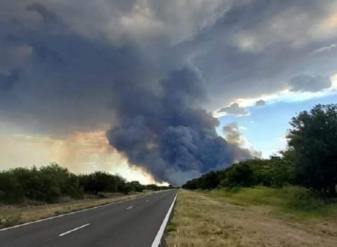 Se difundieron imágenes impactantes, en las que se puede observar una gran columna de humo a la vera de la ruta, que es donde se desató el foco ígneo.