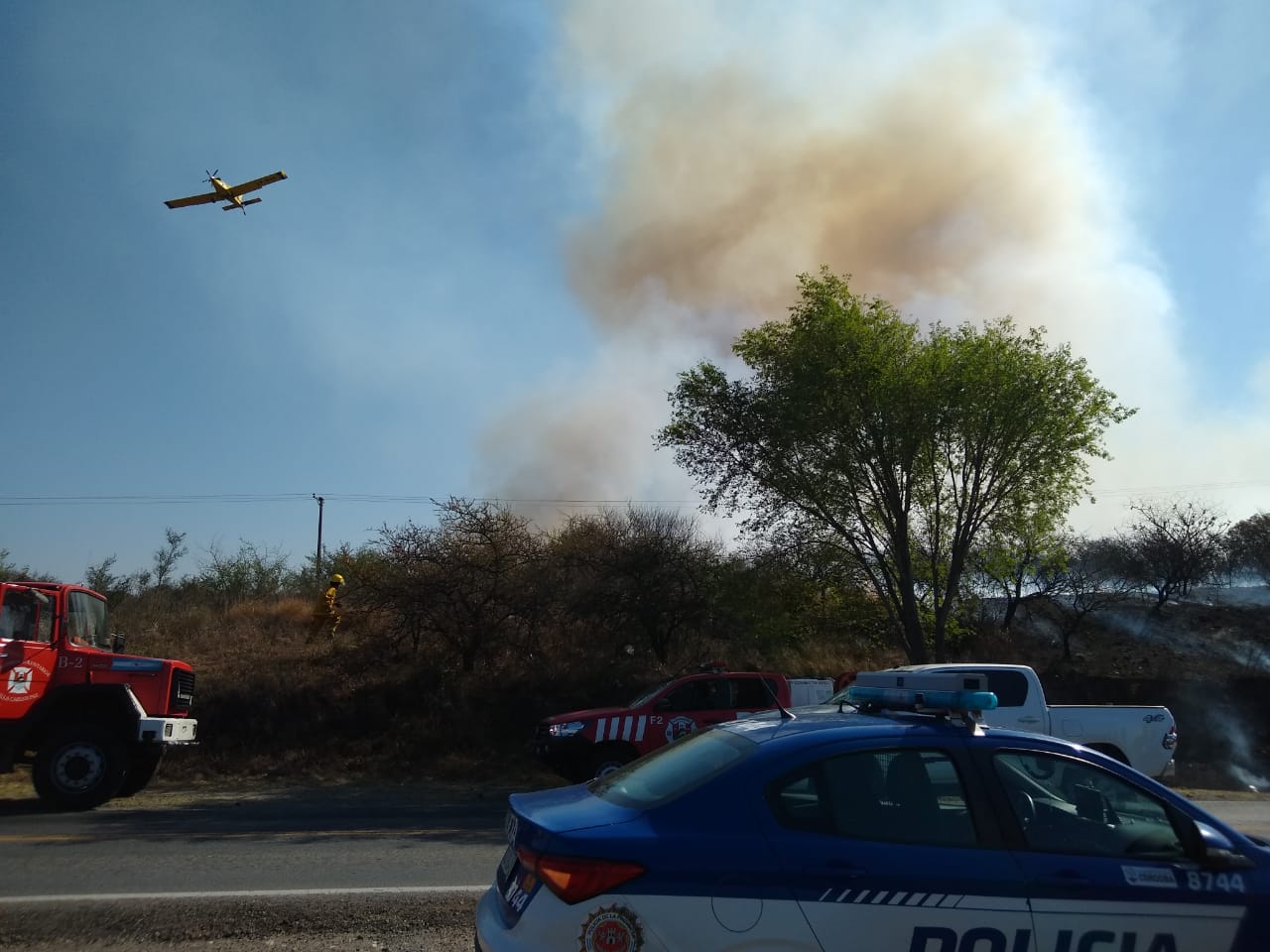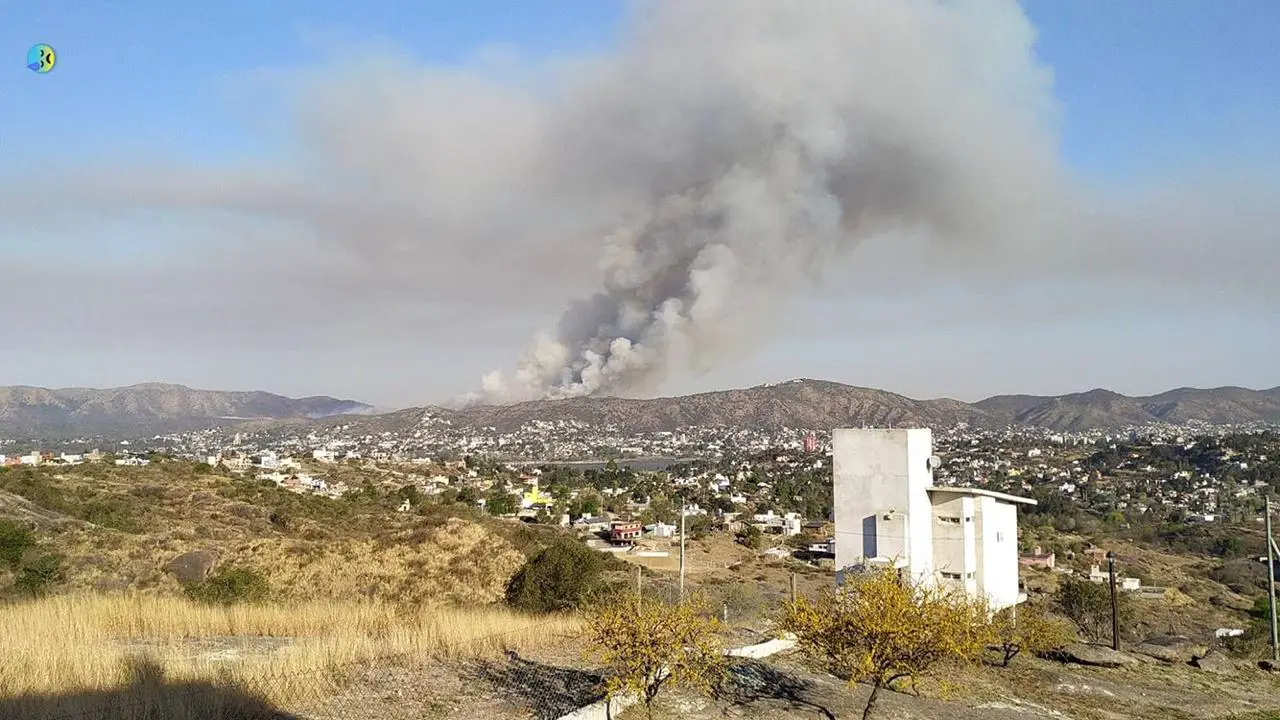 La columna de humo se divisa desde Villa Carlos Paz y sobre la autopista. Trabajan además, los aviones hidrantes del Plan Provincial de Manejo del Fuego.
