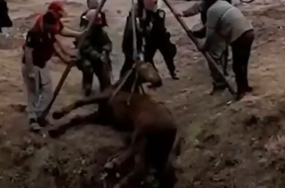 Personal Bomberos de Policía de Córdoba rescató este sábado a un caballo que había caído en un canal en el barrio 9 de Julio, de la capital Provincial.