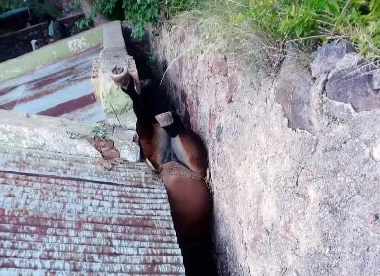 Y agregó: “Cuando logramos enderezarla le dimos un tiempo para que se calmara. Recién entonces se improvisó una rampa con un tablón y piedras, y luego la enlazamos para que pudiera salir caminando. Fue un trabajo en conjunto con el dueño del animal, la gente del complejo y el veterinario Sebastián Jaime, que la asistió inmediatamente”.