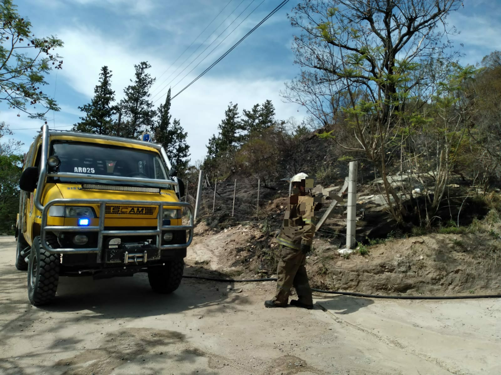 Se hizo presente personal de Bomberos Voluntarios de Tanti quienes lograron sofocar el mismo. Afortunadamente solo afectó una superficie de aproximadamente 20 metros cuadrados de vegetación y no hubo daños materiales.
