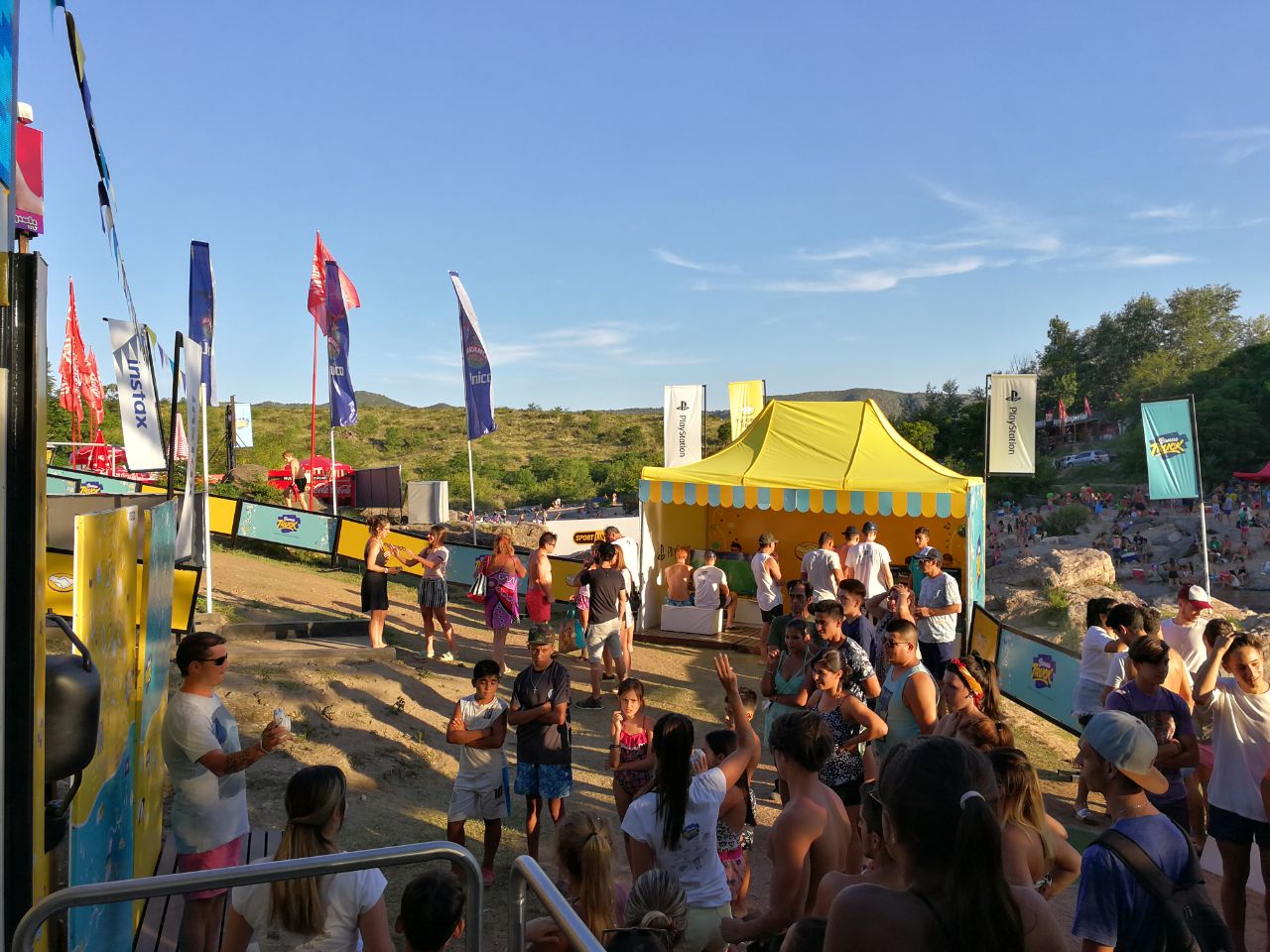 Los turistas congregados en las playas del Río San Antonio participaron de torneos de #FIFA2017 en PlayStation, desafíos de #JustDance, campeonatos de jueguitos con la #Pelota2018 de Sportline y concursos de fotografía express con la cámara #InstaxFujifilm.