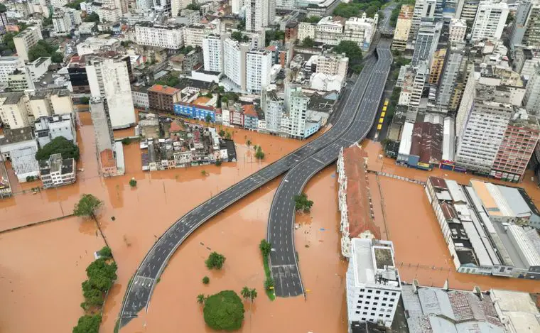 En Porto Alegre, la capital del estado, el lago Guaiba se desbordó, alcanzando el nivel de agua más alto registrado, según el servicio geológico nacional. El aeropuerto internacional ha suspendido todos sus vuelos desde el viernes.