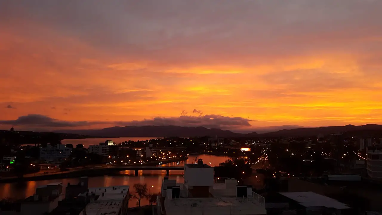 El doble reflejo del cielo sobre el agua del lago San Roque y el río San Antonio, ofreció una postal inigualable que fue captada por la cámara del fotógrafo Fernando Villa desde la cima de un edificio céntrico.
