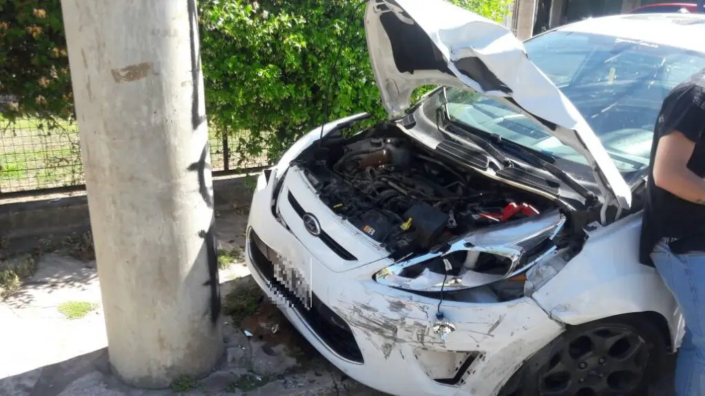 Producto del impacto, el Fiesta blanco terminó incrustado en una columna de alumbrado público situada en la esquina.