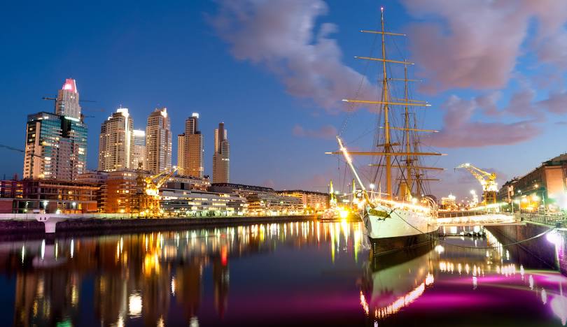 Pasear por Puerto Madero bajo las luces de la noche