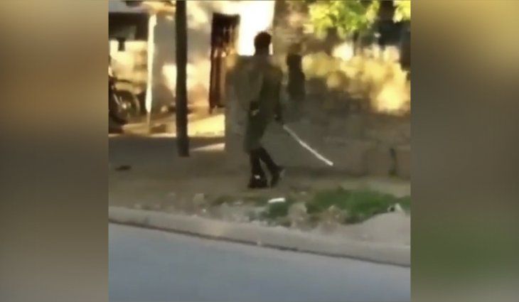Según puede verse en un video que se difundió por las redes sociales, el sujeto agita el arma y con la misma golpea árboles, postes de luz y ramas.
