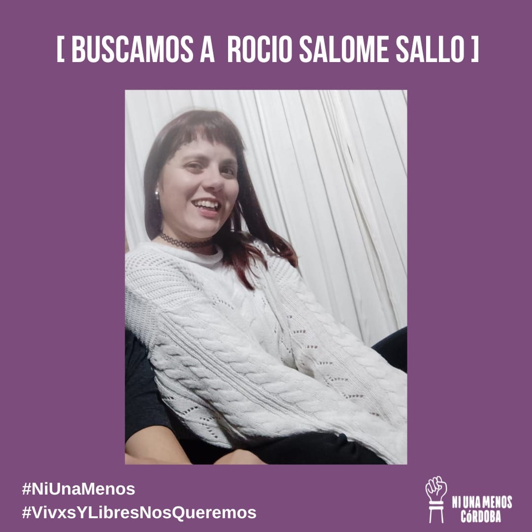 Se trata de Rocío, quien tiene 31 años, pelo lacio color rojo cobrizo, mide 1,55 cm aprox. y fue vista por última vez el día domingo 14 de julio en barrio Bella Vista de Córdoba Capital.