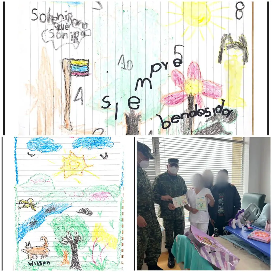 Los niños contaron que Wilson los encontró mucho antes que los voluntarios e hicieron dibujos sobre su encuentro. Sin embargo, se perdió y los militares no lo abandonan: “Ninguno se queda atrás”.