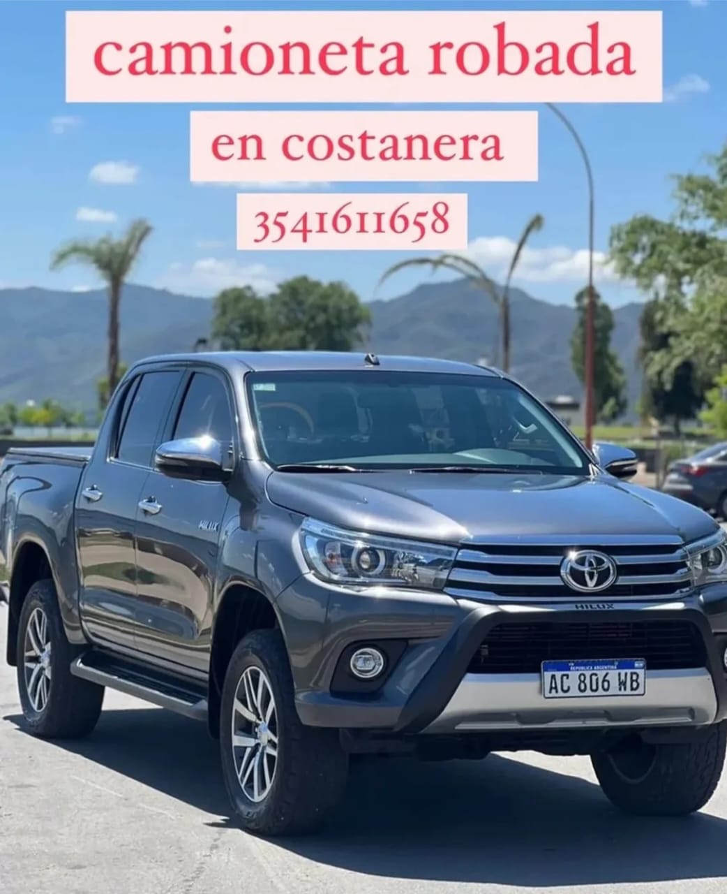 Daniel compartió imágenes del vehículo en redes sociales junto a su número de contacto y pidió la colaboración de la comunidad para dar con el paradero de su camioneta. En las fotos puede verse claramente el modelo del vehículo y la patente, con la esperanza de que alguien pueda aportar algún dato útil.