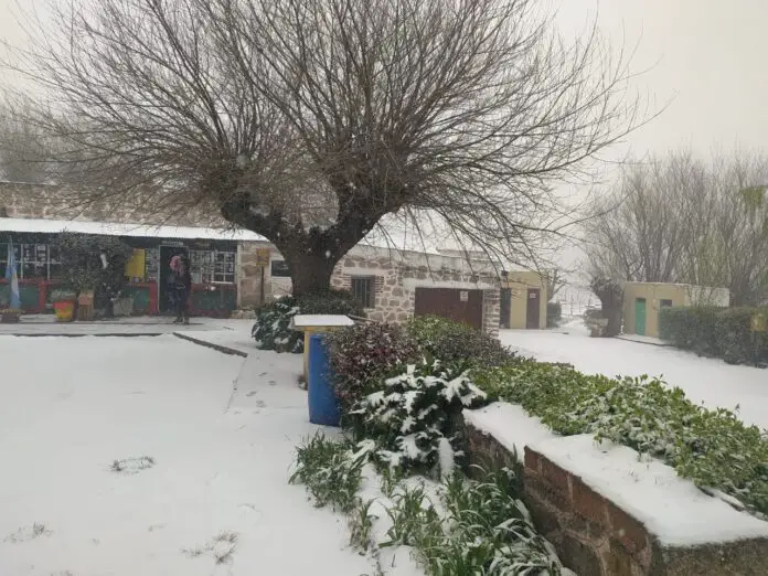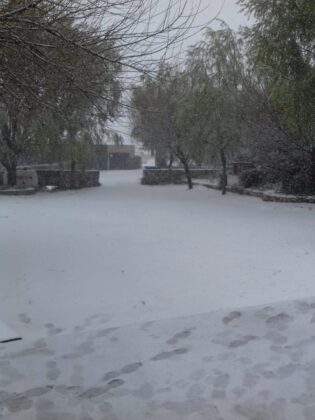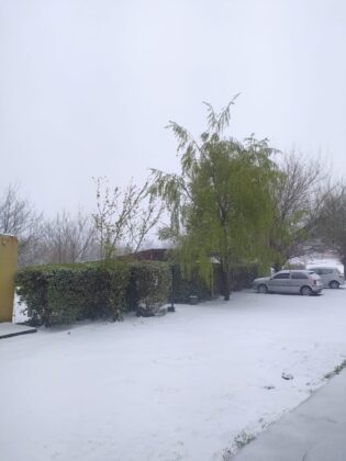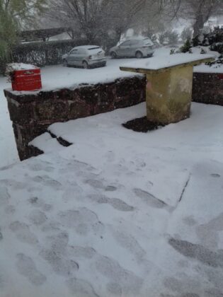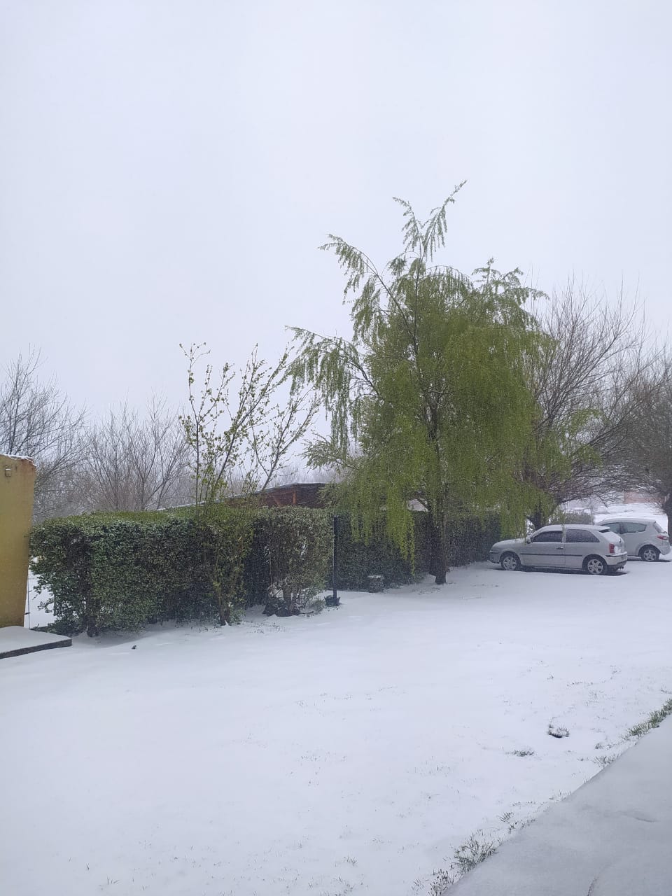 En tanto desde el Parador Casas Nuevas también conocido como “La Felipa” ubicado en la base del cerro, nos envían estas fotos y nos informan que ya se acumularon más de 15 centímetros de nieve en el sector.