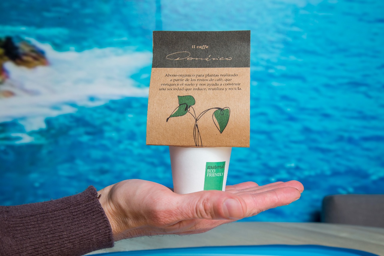 De esta manera, el cliente toma un pocillo y se lleva otro con este material orgánico que enriquece la tierra, cumpliendo la función de fertilizante que no la acidifica en exceso. También nitrogena la tierra ya que el café que tomamos deriva de semillas procesadas que será de gran ayuda para el crecimiento de las plantas, su floración y, en caso de tener una huerta, también para sus frutos. Además, este abono contribuye a ahuyentar caracoles, babosas y gusanos, potenciando la vida bacteriana en el suelo.