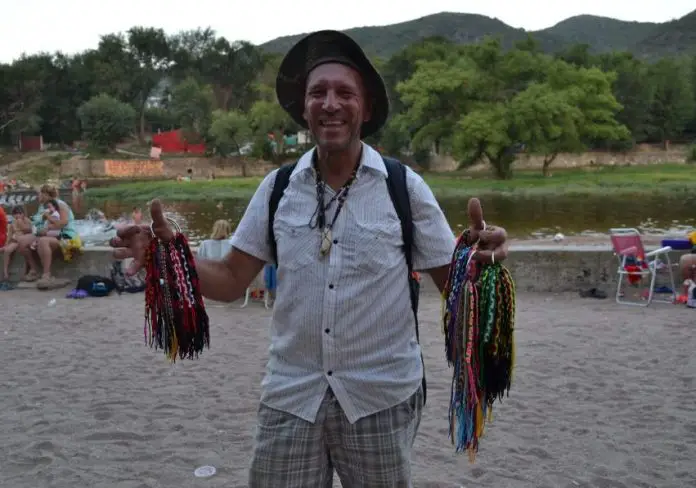 Rostros bronceados por el sol de tantas horas de recorridas de ida y de vuelta, de una punta a otra del balneario Playas de Oro. “Para mí, no te tenés que mojarte porque hay que estar presentable para los clientes. Eso sí, hay que hidratarse mucho y mojarse la cabeza y nada más”, dijo otra vendedora terminando una tobillera.