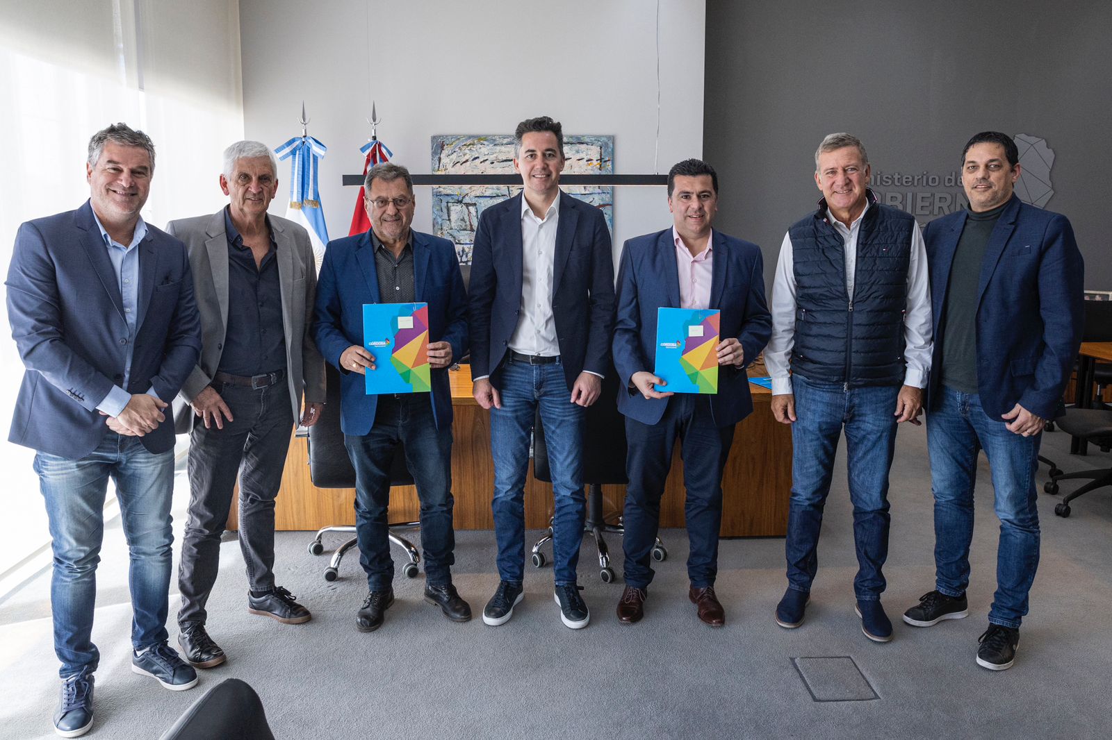 Como parte de las firmas de convenios para el financiamiento de obras que viene llevando a cabo junto a intendentes de toda la provincia, el ministro de Gobierno de Córdoba, Manuel Calvo, recibió a siete municipios que tienen en común su pertenencia al espacio de Juntos por el Cambio.