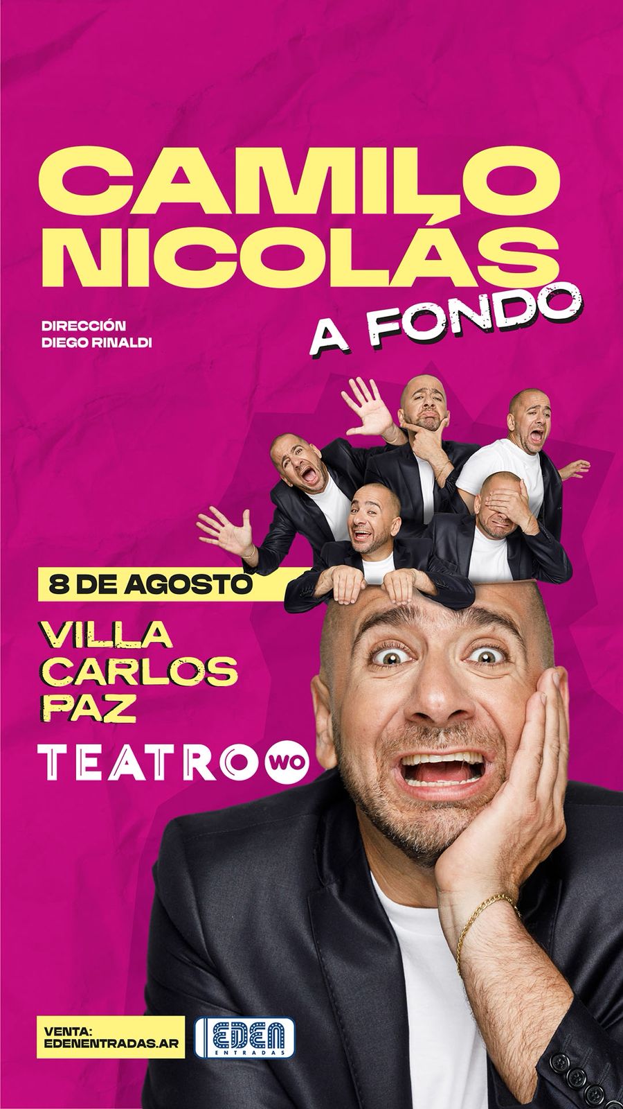 El humorista cordobés Camilo Nicolás regresa a los escenarios de Villa Carlos Paz con su espectáculo unipersonal A fondo, una propuesta que promete risas, reflexiones y la autenticidad que lo caracteriza.