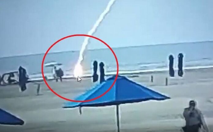 La secuencia quedó registrada en una cámara de seguridad. La mujer se detuvo frente al mar y descalza, cuando ocurrió lo peor: un rayo impactó en su cabeza y la mató. Otro hombre que pasaba junto a ella cayó al suelo, pero logró sobrevivir.