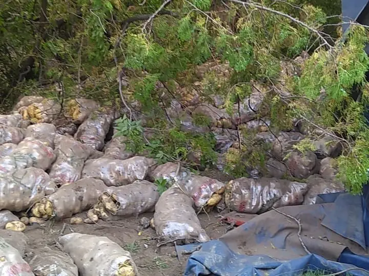 Cerca de las 16.15 de ayer, el último día del fin de semana largo donde muchos turistas retornaban a sus lugares de destino, un camión cargado de papas protagonizó un accidente.