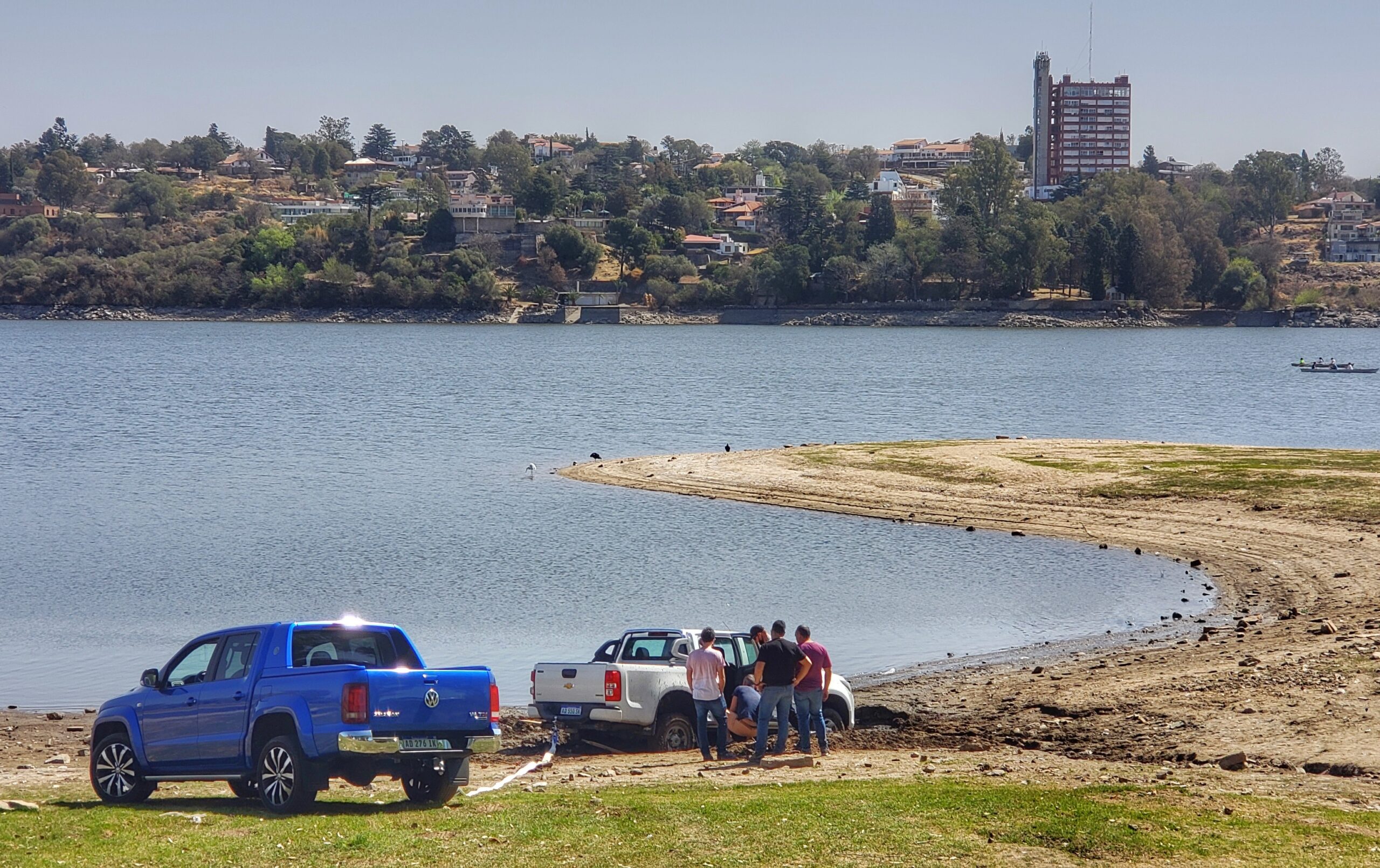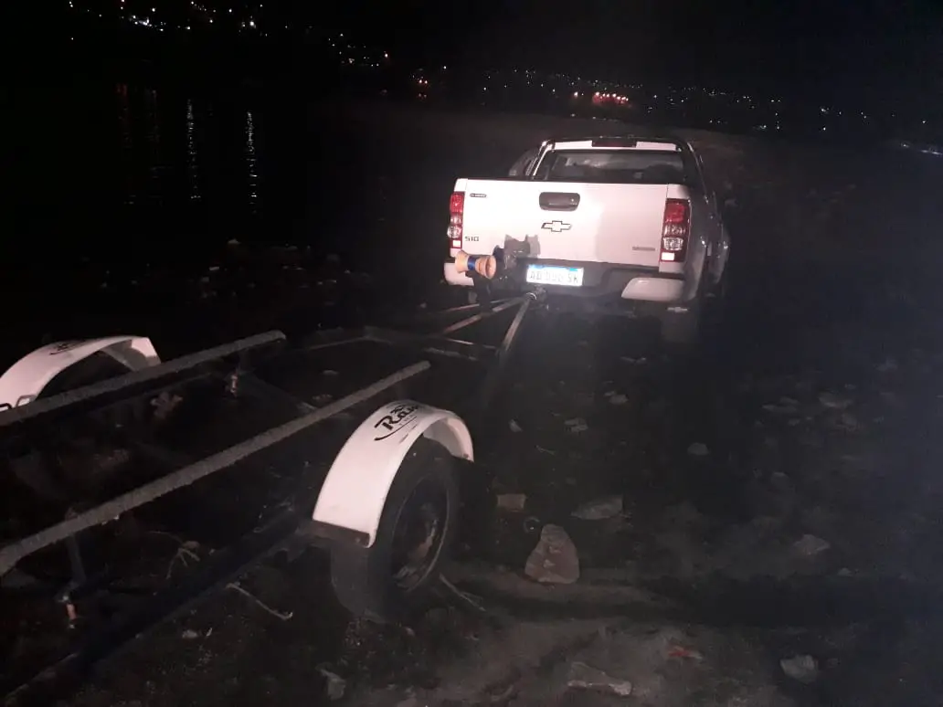 Una camioneta estuvo empantanada durante casi un día en la costa del lago. Al parecer al dueño le quisieron secuestrar el jet ski que estaba usando.