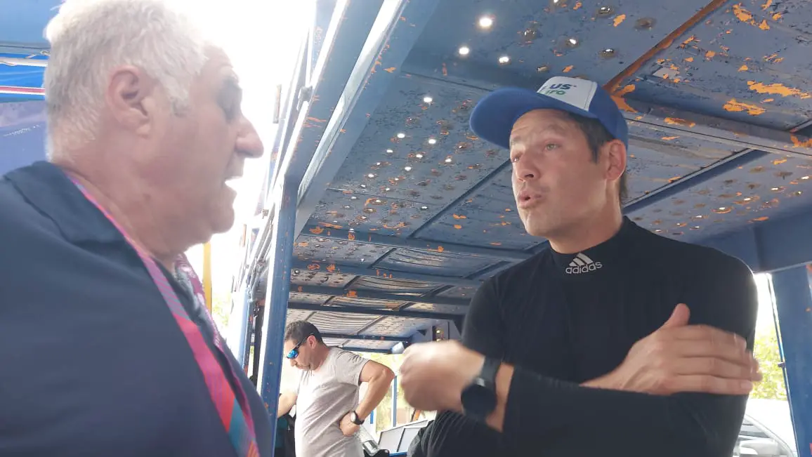 En las otras fotos, en el box del Tango Rally Team, en el caldeado parque de asistencia, Ruben posa con Benicio Ligato (casi un ahijado, que ya lo pasó en altura) siempre luciendo sus gorritas de Villa Carlos Paz, mientras que Marcos conversa apasionadamente con mi compañero de cobertura (TELEFE) José María Volta.