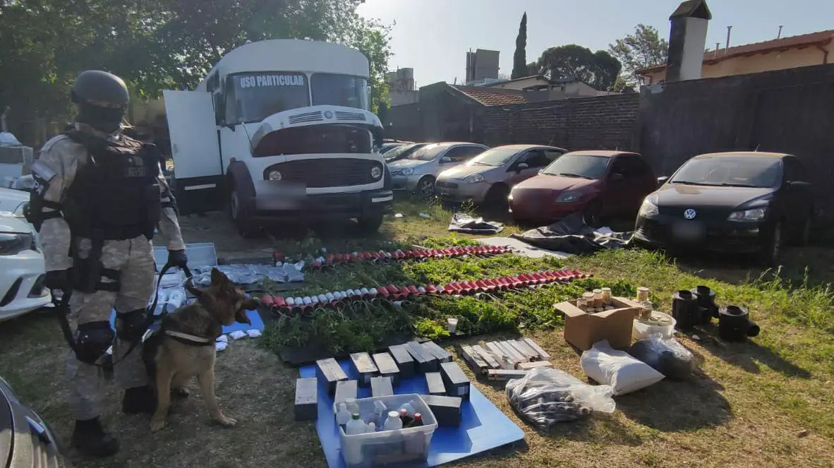 Durante el procedimiento, canes detectores de narcóticos de la División K-9 de la FPA, realizaron trabajos de búsqueda y lograron encontrar dos armas de fuego. Tras manifestarse en el piso del mismo, la Fiscalía que intervenía ordenó el traslado del rodado para continuar con los trabajos pertinentes.