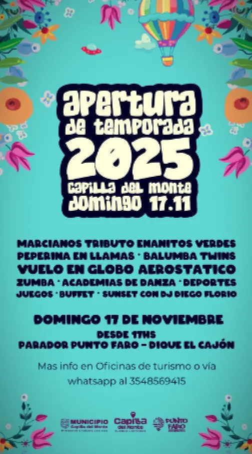 Para obtener más información sobre la apertura de temporada 2025, donde Capilla del Monte los espera con los brazos abiertos para disfrutar de grandes momentos, pueden comunicarse a la oficina de turismo o vía WhatsApp al teléfono: 3548- 569415.