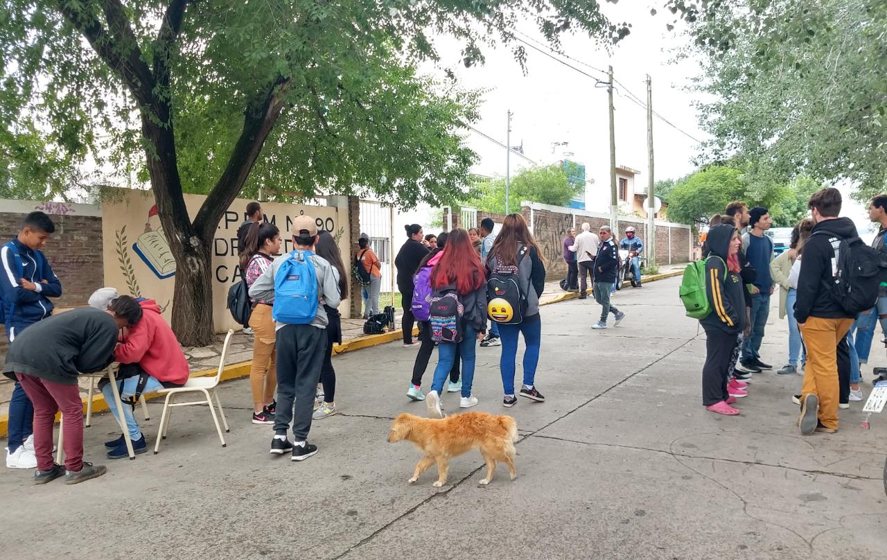 Este lunes a la mañana, los alumnos del IPEM N° 190 Pedro Carande Carro realizaron una sentada afuera del edificio escolar y aguardaron la reunión que mantuvieron con las autoridades de Infraestructura Escolar de la Provincia y los responsables de la empresa constructora de las nuevas instalaciones.