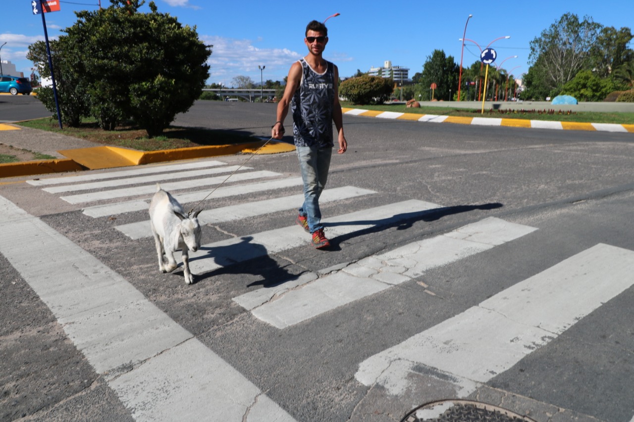 El Flaco de remera cannábica y su fiel mascota cordoobesa merecían que frene, que les ceda la prioridad en el cruce por el paso zebra, como corresponde.