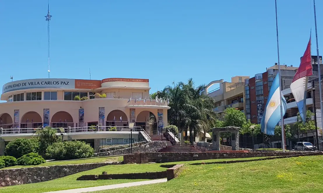 La Bandera Nacional y la de la Provincia de Córdoba flamean a media asta en los Jardines Municipales del Palacio 16 de Julio.
