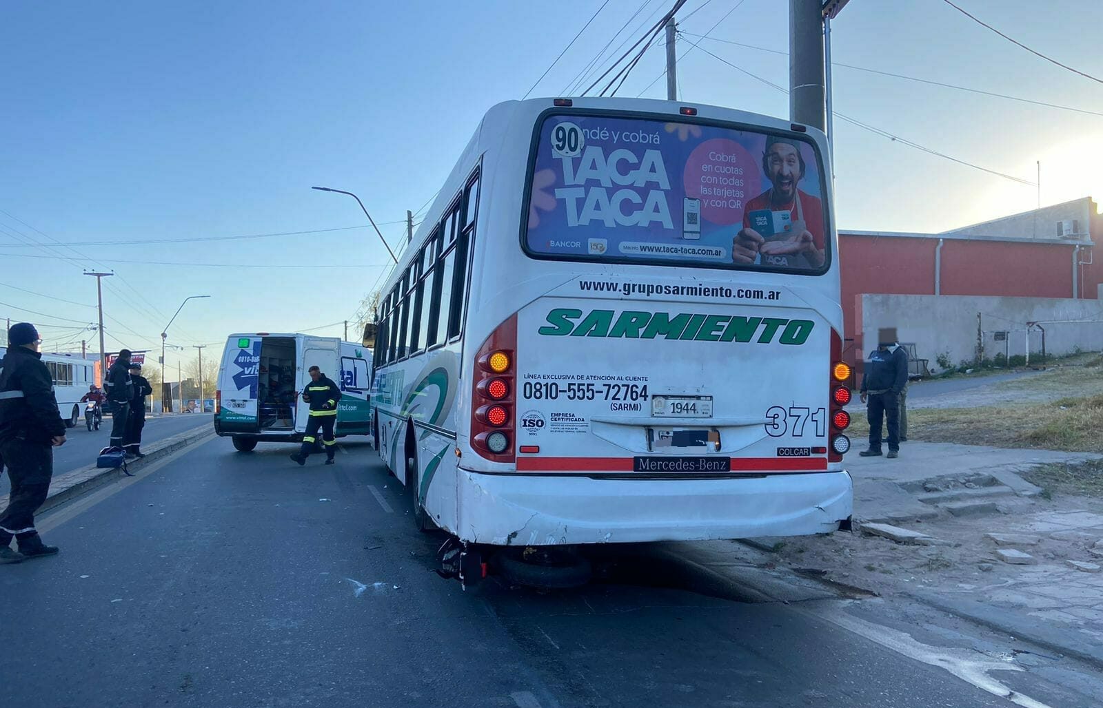 Según fuentes policiales, el chófer del colectivo interurbano de la empresa Sarmiento manifestó haber sido impactado por una motocicleta Rouser, conducida por otro hombre de 29 años.