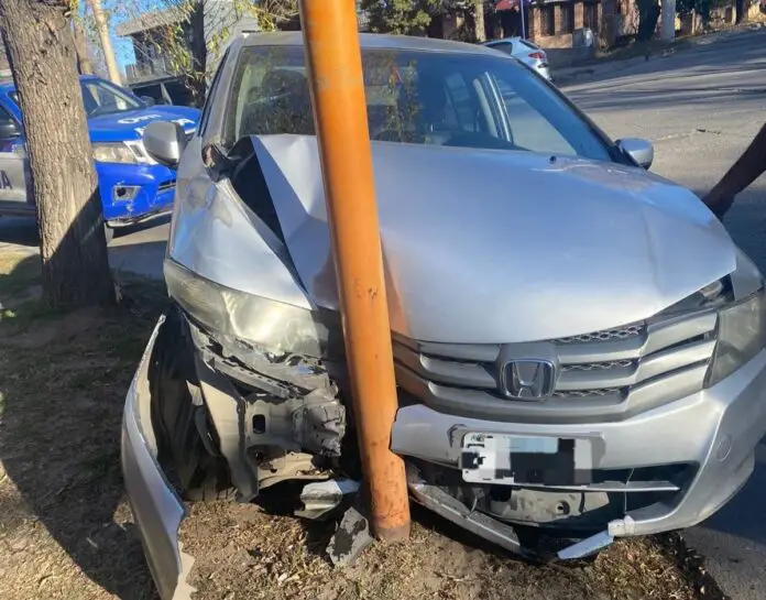 Como consecuencia del impacto, el auto impactó contra un poste de alumbrado público.